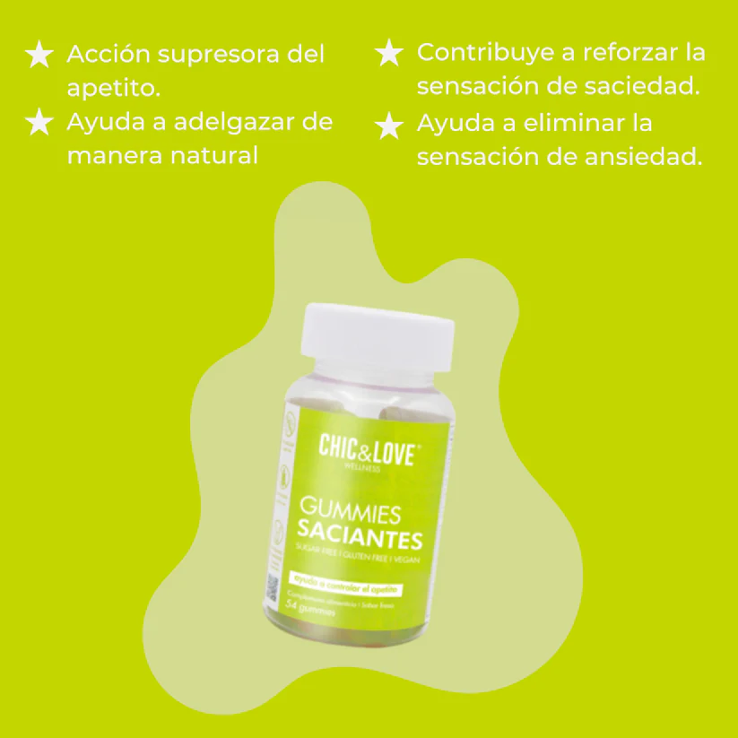 Sin azúcar, sin gluten y sin lactosa. 54 gummies. La dosis recomendada son 2 gummies antes de la comida del medio día y 2 antes de la cena. La duración mínima del tratamiento es de 3 meses y para tener resultados óptimos de 6.